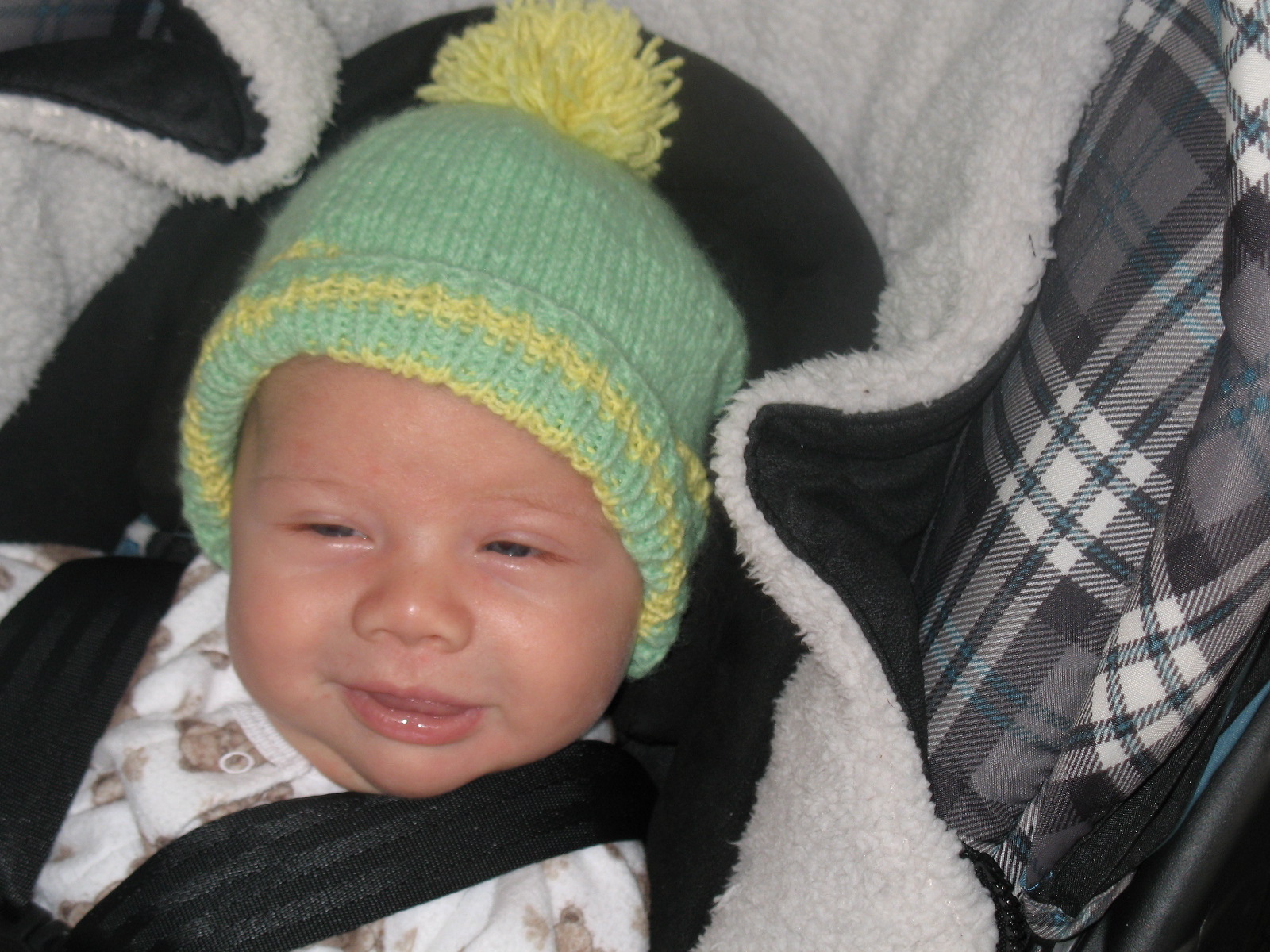 I am a woman who loves a toque. I wear them all the time, who cares if I look like Jay of Jay and Silent Bob, I love them. And, I am instilling this very real, very Canadian love on my child. This toque is a present from his Grantie Judy. And it’s awesome. Although I am afraid he’ll out grow it before too long and then I might have to frame it. Along with his umbilical cord stump and my pregnancy test. Is that weird to want to frame all that stuff and put it on my walls? I don’t think so, but someone might.