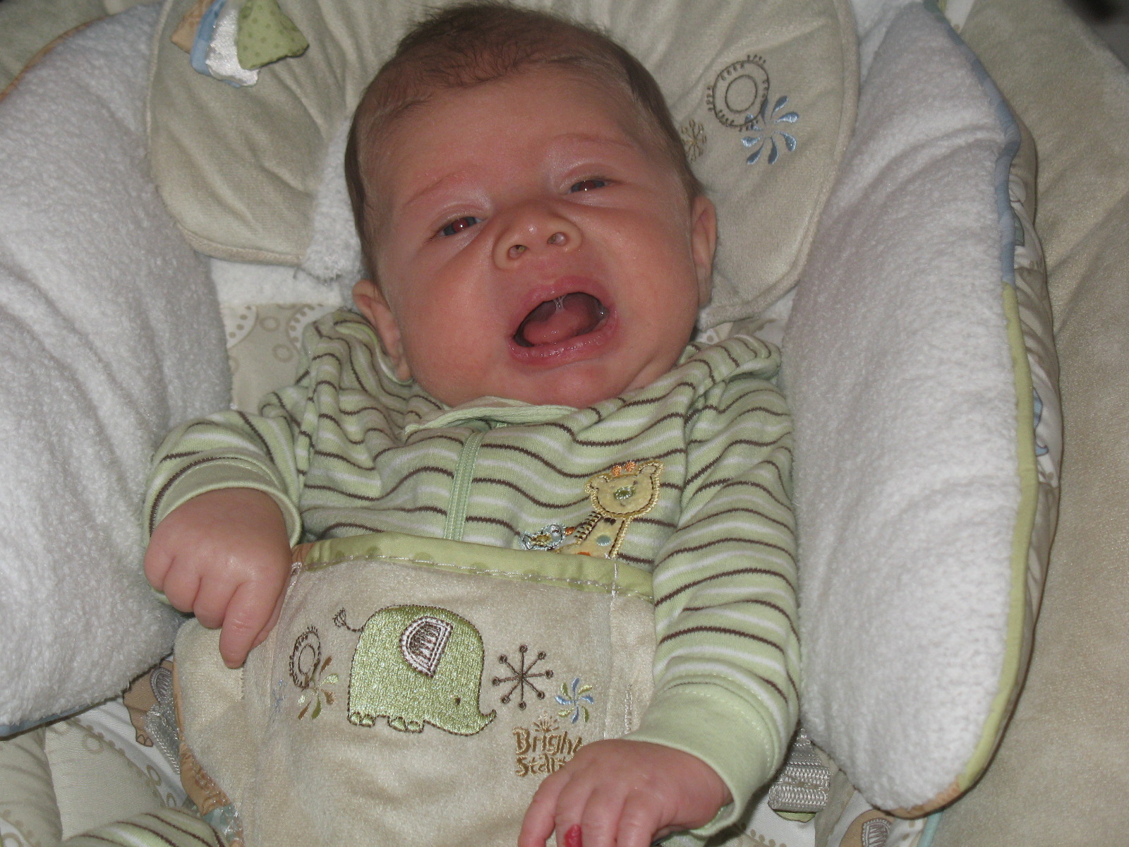 Oh, and the baby has started smiling. We’ve tried to catch it on the camera but he’s like Snuffle-smile-agus, every time he does it the camera’s either just missed it or he won’t do it again. Sneaky RRBB.